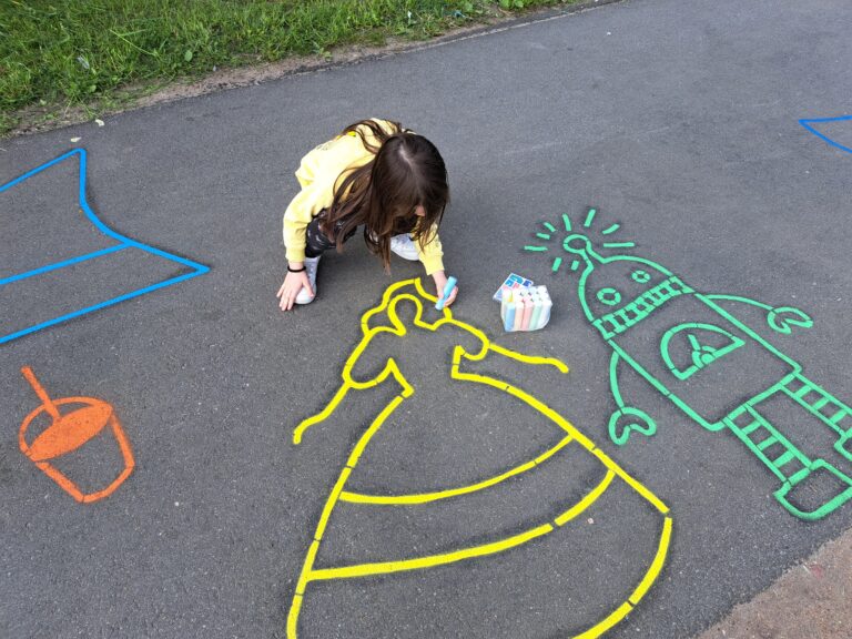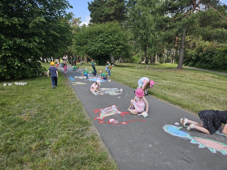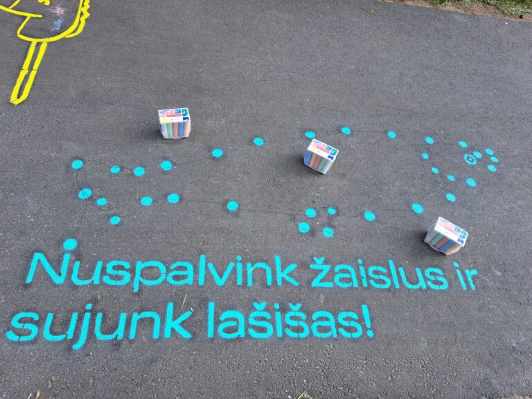 „Išeik į kiemą Grigiškėse“ – kviečia pažinti Grigiškes žaidžiant. Mažajame skersgatvyje, esančiame netoli upės, mažųjų miestiečių laukia menininko Povilo Kupčinsko išmargintos gatvelės, kuriose vaikai gali spalvinti, sujungti piešinio taškelius, įveikti labirintą ar šokinėti „klases“. Tarp visų užduočių „nardo“ žuvys ir „guli“ išbarstyti žaisliukai. Šiuos elementus, pasakojančius įdomiąsias Grigiškių istorijas, padėjo atrinkti gidė-istorikė Angelina Zaleckaitė. Projekto idėją įkvėpė šalia veikusi žaislų parduotuvė ir Vokės upėje neršiančios lašišos.