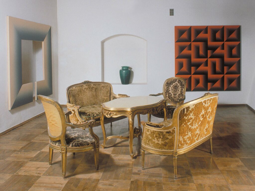 However, there are more than forty exhibition halls that combine old graphics, maps, Western European sculpture and painting, historical furniture, as well as Far Eastern art and K. Varnelis’ own optical art compositions.