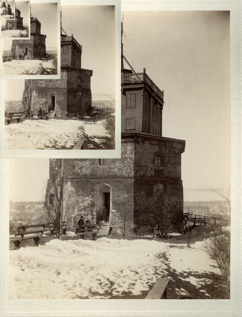 In the summer of 1837, the skyline of Vilnius underwent a dramatic transformation when construction began on a wooden optical telegraph structure atop Gediminas Tower. Inside, the tower was divided into two levels: the lower floor housed an entrance hall and a kitchen for the operators, while the upper level served as their living quarters. The two-storey superstructure, completed in 1838, held the optical telegraph mechanism itself, an observation room, and the director’s office. By the autumn of 1839, the signal operators had moved into the tower.