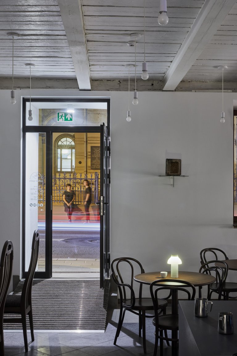 Tai ne tik rūšinės kavos ir ankstyvųjų / vėlyvųjų pusryčių vieta, bet ir įkvėpimo, netikėtumų ir pokalbių erdvė. Pro mūsų langus atsiveria nuostabioji, vienintelė Vilniuje veikianti žydų sinagoga, o interjeras kurtas išlaikant erdvės savitumą ir istorijos pėdsakus.