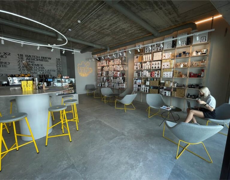 Rūšinės kavos baras, kavos reikmenų ir aksesuarų parduotuvė.