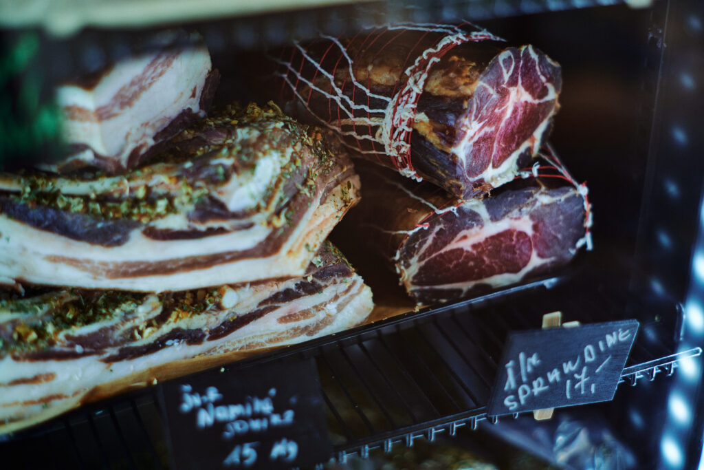 Pas mus rasite daug tautinio paveldo gaminių: lietuviškai rūkytų lašinių, dešrų bei vietinės rūkytos žuvies. Autentiškos juodos duonos ir duonos giros. Tradicinių sūrių. Sezoninių produktų: pvz. beržų sulos, stintų, daržovių ir uogų. Naminių pyragų, kuriuos galėsite paragauti vietoje, su kvapnios kavos puodeliu.