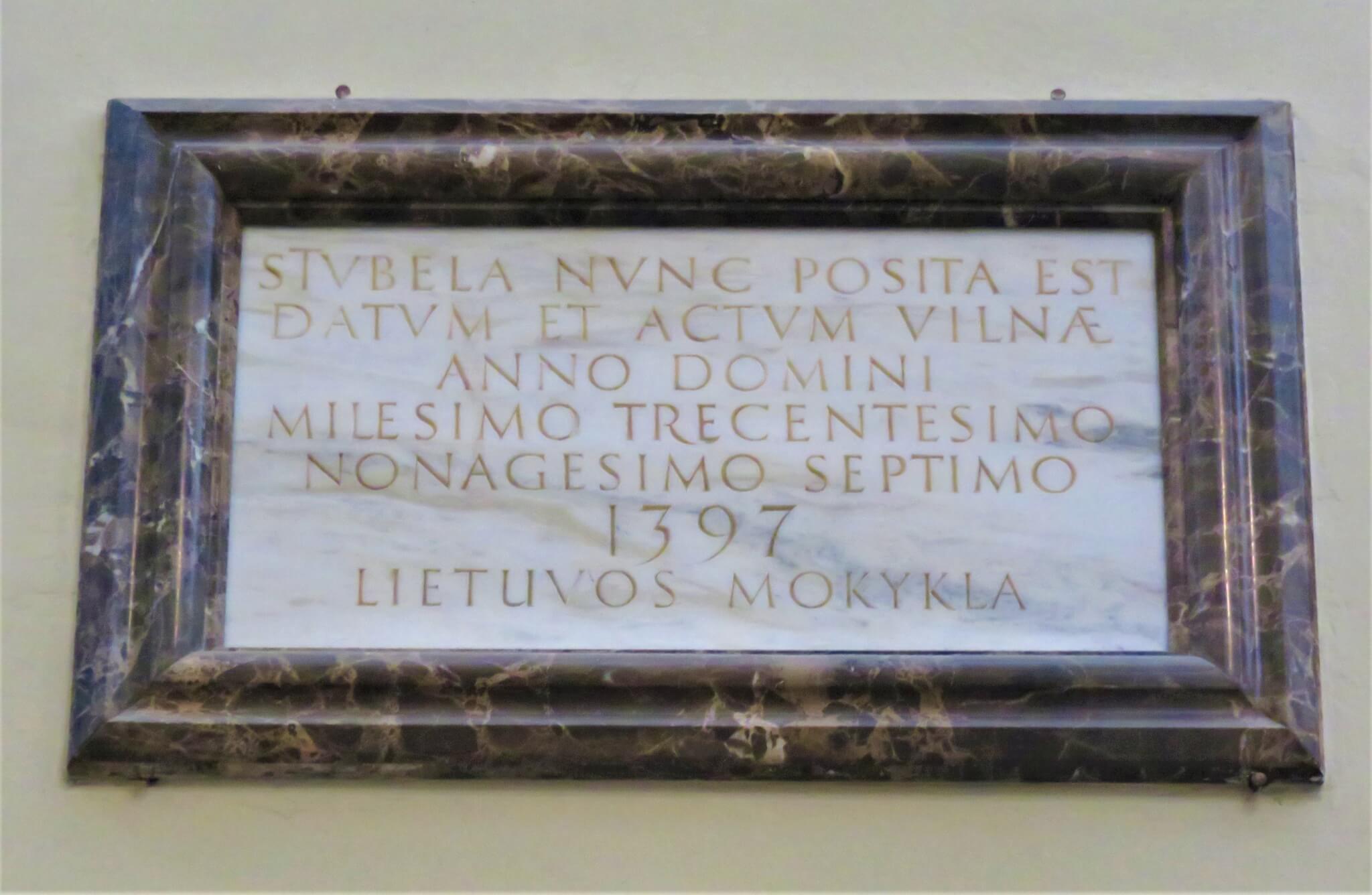 - Ką žymi rausvo granito plokštės katedros aiktštėje?