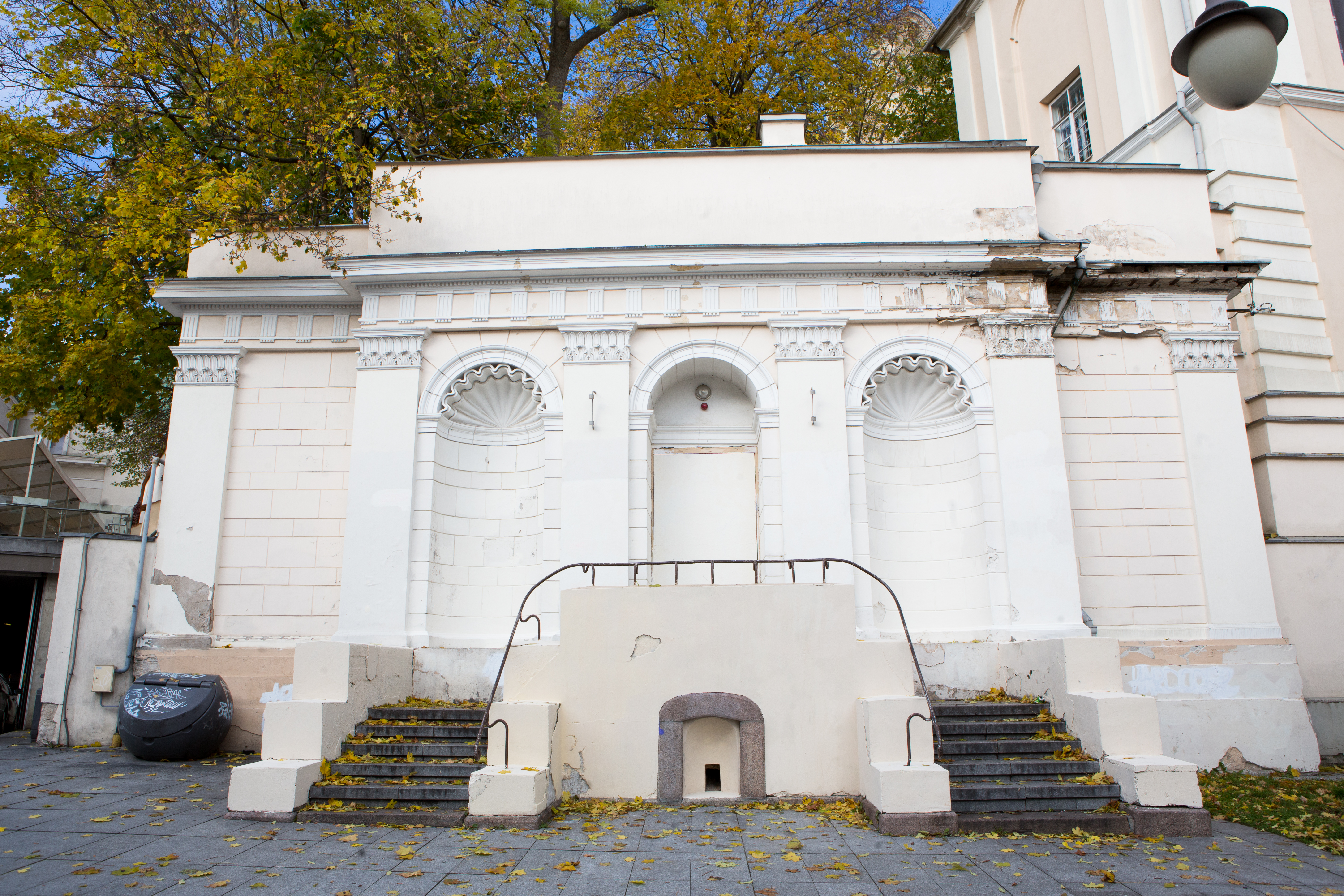 Bendrą įėjimo vaizdą rekomenduojame apžiūrėti iš didesnio atstumo ar kitos gatvės pusės, tada prieikite arčiau apžiūrėti detalių.