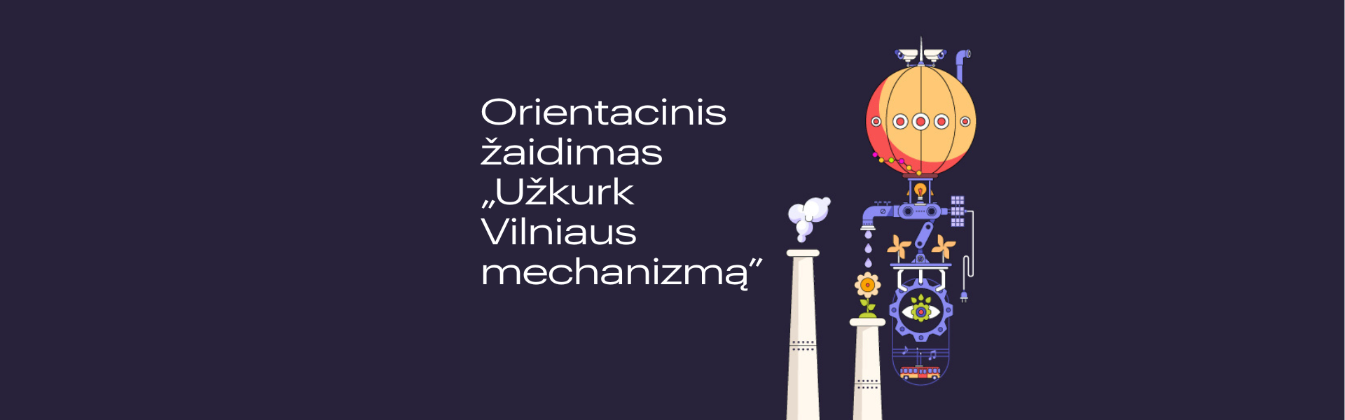 Kiekvieną dieną Vilnius – lyg didžiulis mechanizmas, kuriam veikiant susijungia šimtai tarpusavyje derančių dalių: transportas, energija, švara, apšvietimas, žaliosios erdvės ir bendruomenės. Orientacinio žaidimo tikslas – parodyti miestiečiams ir svečiams, kiek daug darbo kasdien įdedama, kad Vilnius veiktų sklandžiai, bei pakviesti patiems simboliškai „užkurti“ Vilniaus mechanizmą.