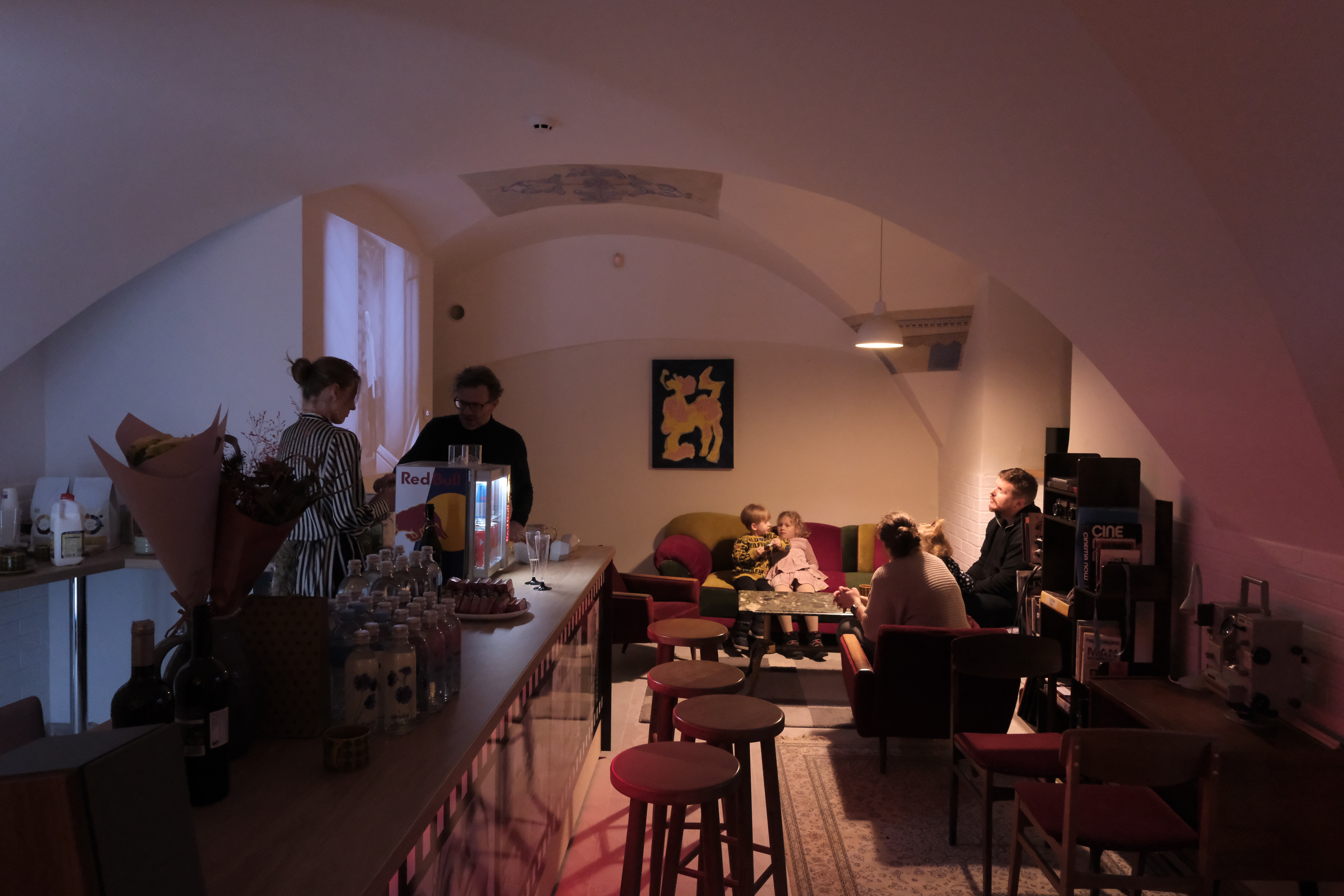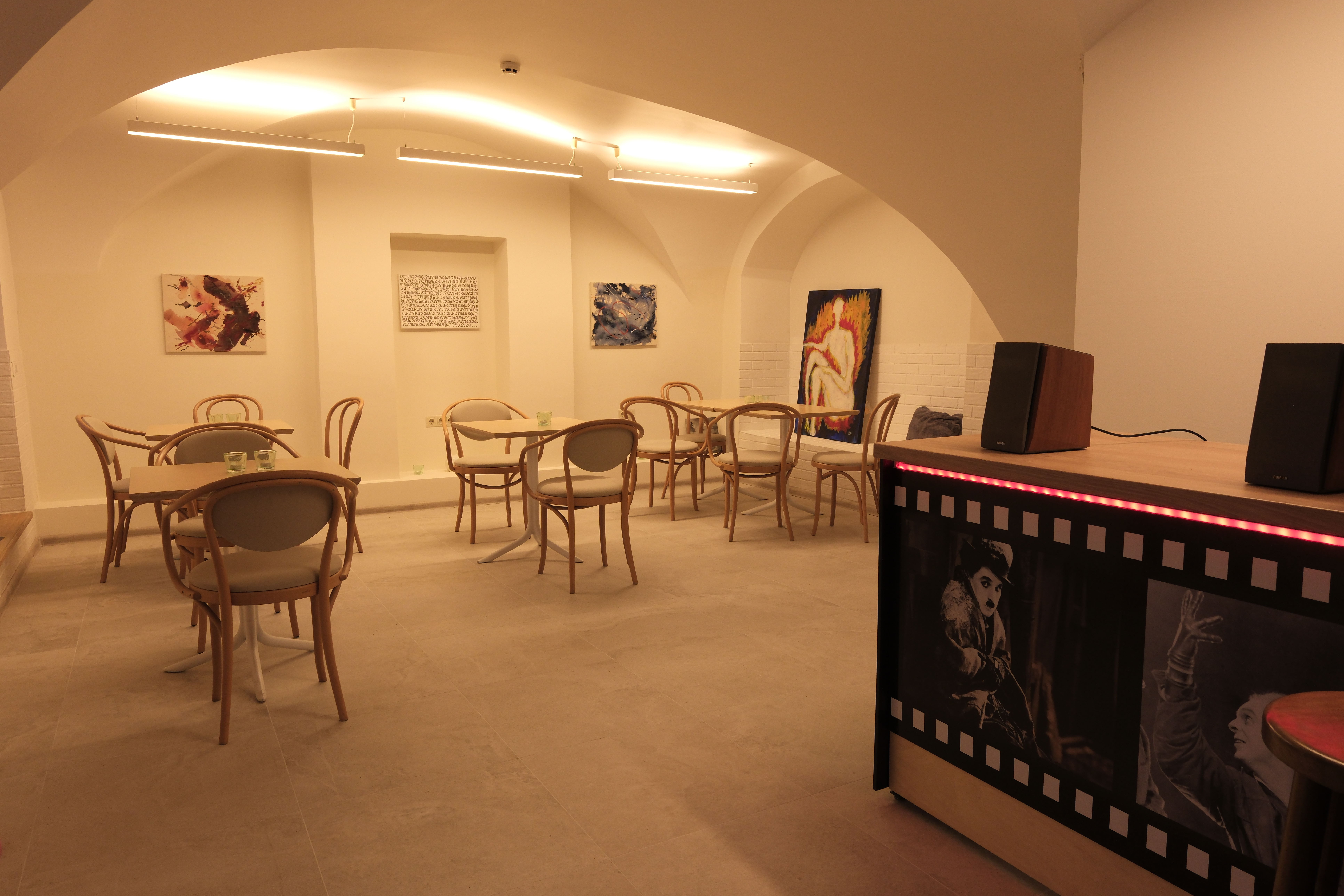 Kavinė, co-working erdvė ir meno galerija.Kino filmų tematika įrengta kavinė, kurioje galėsite žiūrėti filmus nemokamai, skaityti kultūrinę spaudą, įsigyti suvenyrų ir dovanų. O vakarais nuo 17 val. – atvira erdvė jūsų šventei ar gimtadieniui.