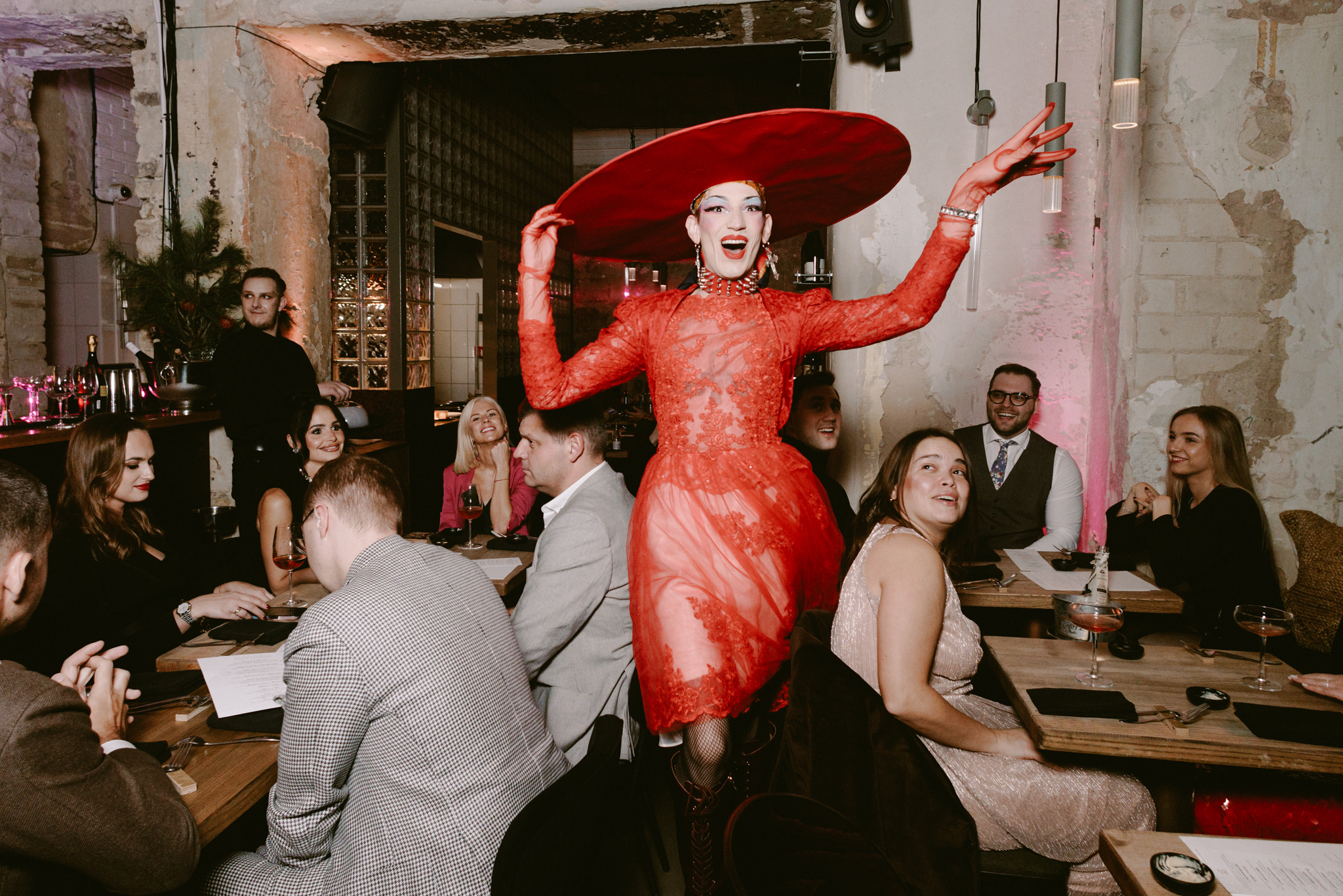 Čia vakarienė tampa patirtimi – prie stalų sėdintys žiūrovai stebi bei yra įtraukiami į gyvus pasirodymus. Restoranas bendradarbiauja su „Nijinsky III“ kabareto atlikėjais ir kviestiniais svečiais iš užsienio, todėl kiekvienas vakaras tampa mini spektakliu, kuriame skonis ir pasirodymai veikia kartu.