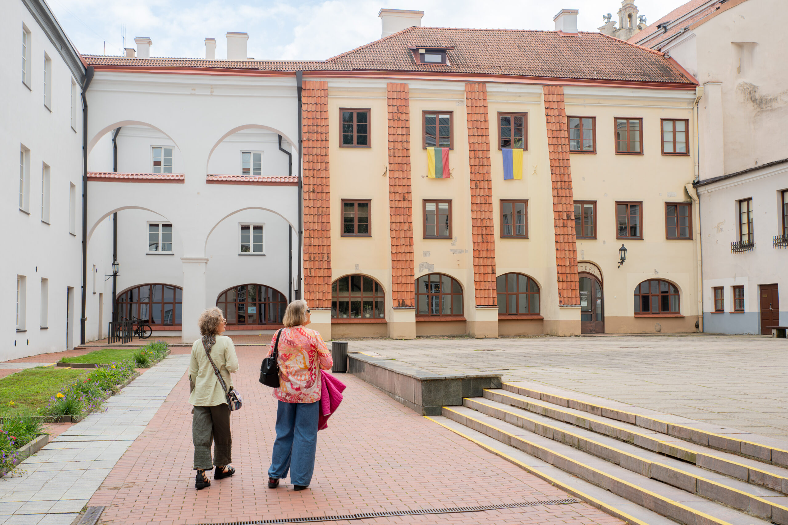 Į buvusius profesorių butus, kurių dalyje dabar įsikūręs Filologijos fakulteto dekanatas, smalsuoliams patekti ne taip paprasta. Visgi atvirose kiemo erdvėse akis neabejotinai užklius už pietinio pastatų korpuso ir masyvių kontraforsų su nišomis. Manoma, kad jie išlikę dar iš XVI amžiaus, atkreipia dėmesį N. Bulotaitė. Pažvelgus į rytinio korpuso arkadas, galima įsivaizduoti jas remiant čia buvusios vežiminės stogą.