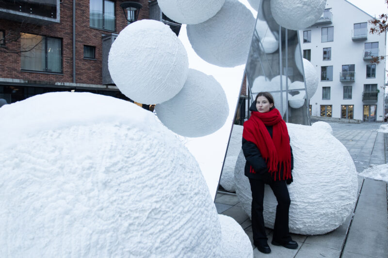 Antras spust – prie kitoje gatvės pusėje nuo „Senelės pasakos“ blyksinčių didžiulių metalinių atspalvių burbulų, primenančių diskotekų rutulius, ir kaspinų (baras „Spritz Summer Garden”). Pagauk savo atspindį veidrodyje – kalėdinis atvirukas garantuotas, beliks užrašyti palinkėjimą.