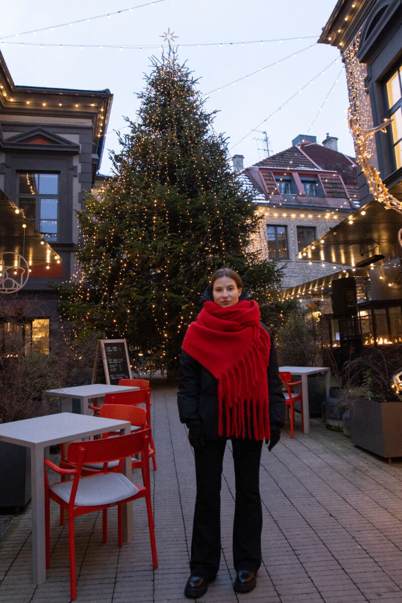 Senatorių pasažo kieme šildo ne tik karšti gėrimai, bet ir šildytuvai. Visa tai tam, kad galėtum pasimėgauti natūralia žaliaskare, švytinčiomis elnio bei Kalėdų senelio figūromis bei girliandų lemputėmis. Pamatyti, kaip į uždarą kiemelį atvežama aukšta eglė – neeilinis įvykis. Pabandyk jį įsivaizduoti, beieškodamas geriausio kampo nuotraukai iš šio jaukaus kalėdinio kiemelio.